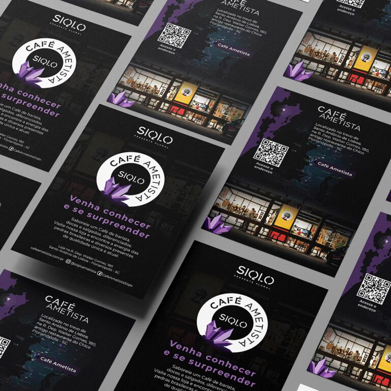 O foco foi fortalecer a loja conceito e a inspiração artística do proprietário, inspirada em Mondrian e com forte direcionamento para pedraria brasileira, o Café Ametista comunica arte, elegância e minimalismo. A ideia foi retratar a pedra ametista, que traz o nome do estabelecimento e a força da arte sem cair em clichês. A marca ganhou o símbolo de pássaro livre, com asas bem abertas em um voo alto para novos céus. O vídeo de divulgação propõe fortalecer a localização.