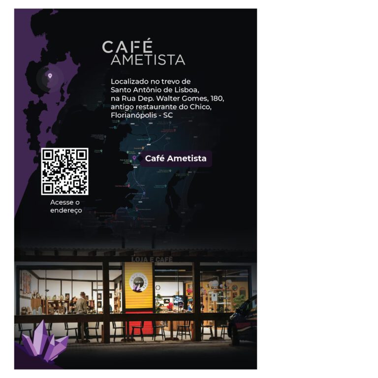 O Café Ametista vai além de um local para apreciar um bom café, é uma loja conceito com objetos de arte, apresentações artísticas e uma seleção única de plantas e pedras que fazem do espaço um ambiente natural e tranquilo. Localizado no caminho das praias, é um lugar perfeito para celebrar encontros e inspirações. A marca e toda sua identidade visual precisava comunicar este movimento.
