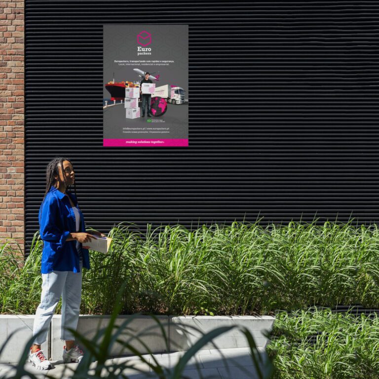 Para comunicar a experiência de anos no serviço porta a porta, que muitas vezes atravessa o globo, o pedido foi para criação de uma campanha objetiva, amigável e que exibisse as formas de atuação de seus serviços. Foi a partir desse briefing que construímos uma imagem forte com as cores institucionais, meios de transporte utilizados pela Europackers e, é claro, a simpatia de seus funcionários.