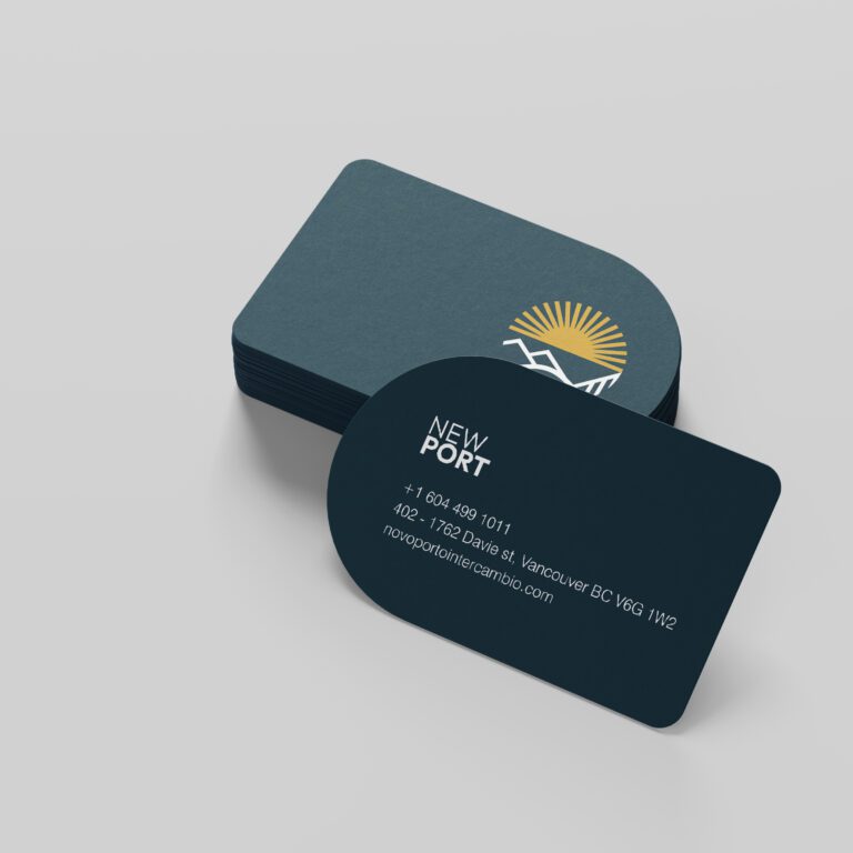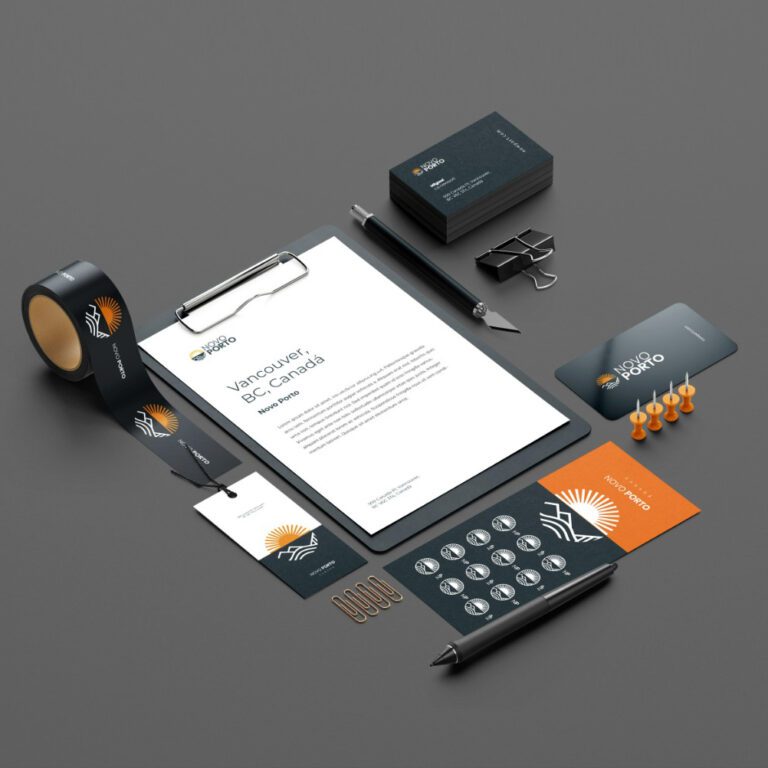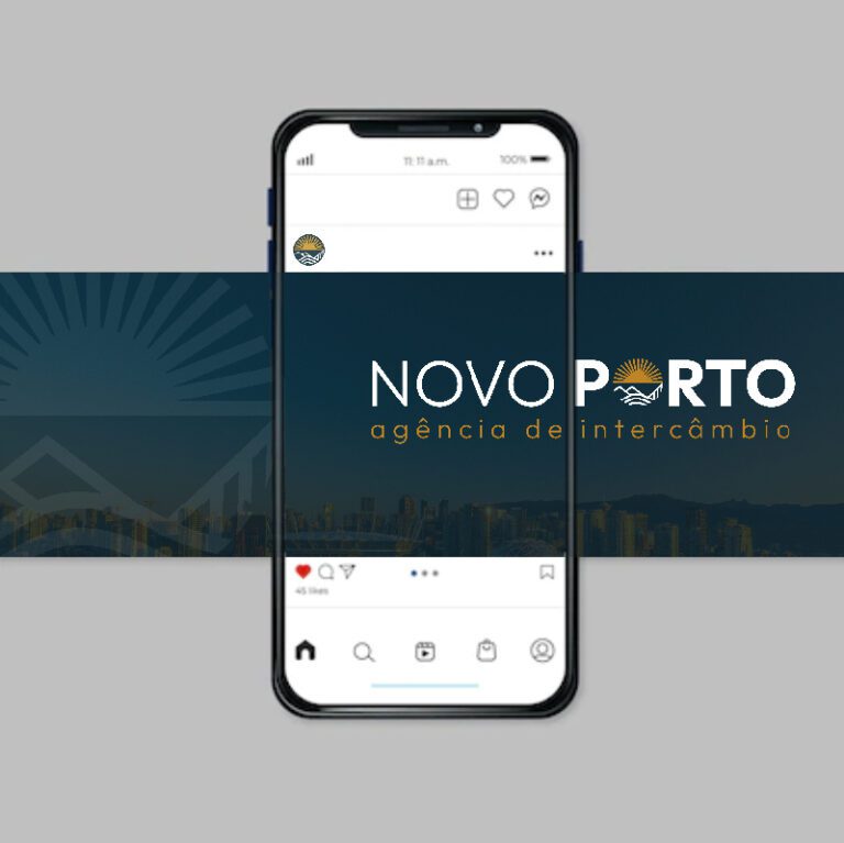 A presença do sol e do horizonte montanhoso, aliada ao caráter totalmente amigável, foram as características mais marcantes para representar a Novo Porto. Por isso, uma representação redonda, com cores vivas em composição com o azul marinho – do mar, das noites e da atmosfera educativa que o intercâmbio proporciona. Pensar em peças atrativas e diferentes foi estratégico para diferenciação no negócio. Tags para malas, fita identificadora e convites personalizados.