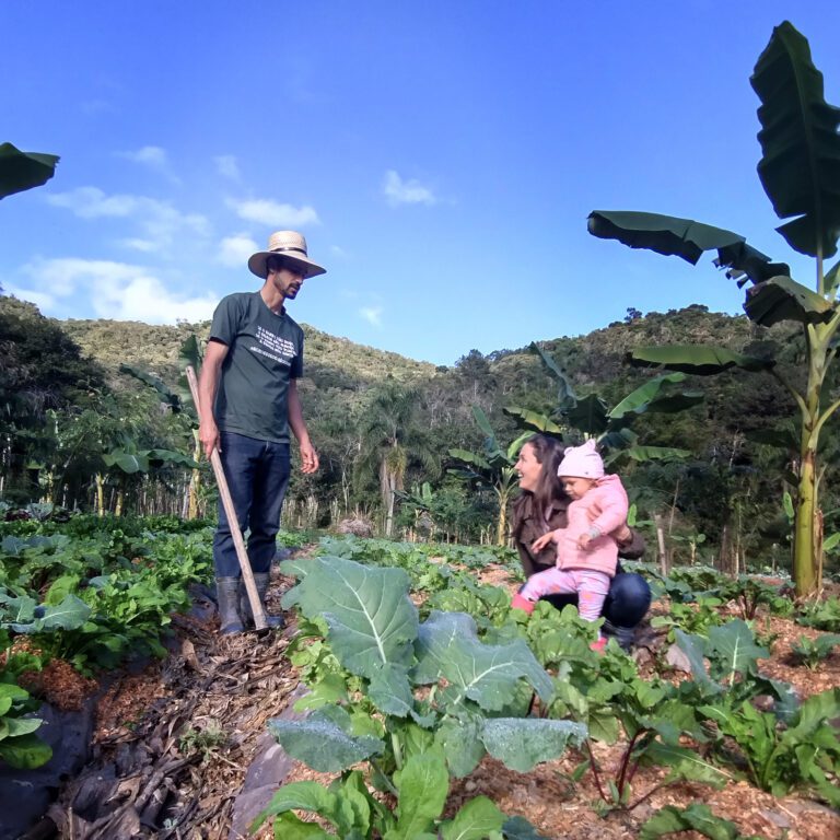 Um organismo, uma comunidade, uma família… uma unidade… Na pequena escala, um casal idealista e dedicado, comprometido em contribuir e retribuir à abundância que o mundo oferece! Vitor e Tânea construíram e vivem no Sítio Saraquá, no município de Angelina SC, e estão estruturados como agricultores familiares, tirando o sustento exclusivamente da terra. Trabalham em parceria com outros produtores ecológicos da Rede Ecovida e com o apoio dos consumidores conscientes, que reconhecem os impactos de seus hábitos de consumo alimentar. Uma história que, de imediato, já encantou a equipe para fazer o melhor trabalho de design e comunicação!